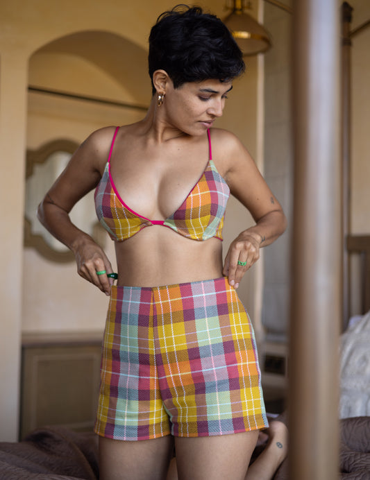 The Lucia set - Checkered Bra & Shorts Co-ord
