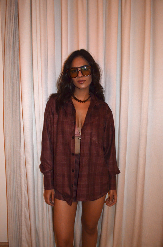 The Monica - Checkered Long-Sleeve Shirt : Maroon