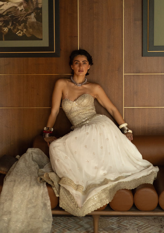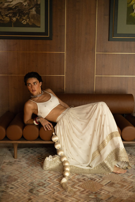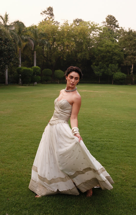 Zoya Lehenga - White Embroidered Skirt with Laces