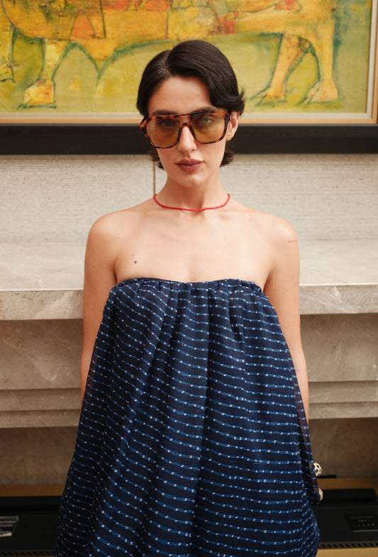 Amara - Blue Leheriya Balloon Dress