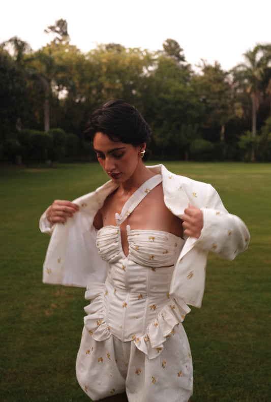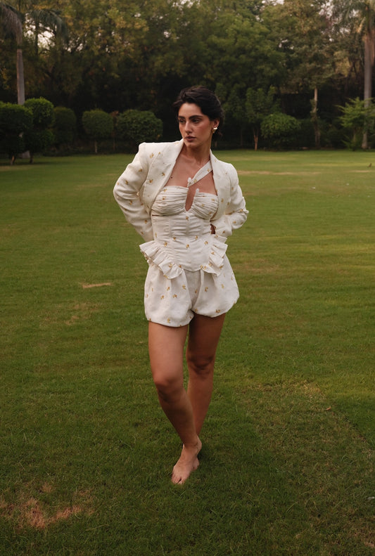 Layla Corset - Embroidered Linen with Ruffles & Gathers