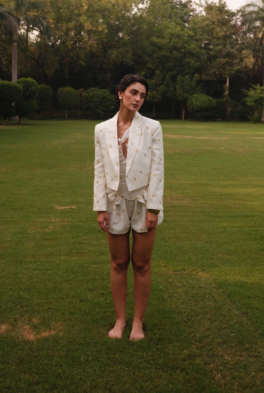 Layla Summer Blazer - Cropped Embroidered Linen
